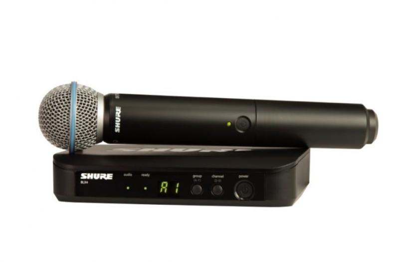 Gyártó: Shure Modell: BLX24/B58 Leírás: Professzionális, dinamikus mikrofon énekre. Gerjedésre nagy hangerőn sem hajlamos. Pneumatikus, felfüggesztése miatt a külső zajokra érzéketlen. Nagy kimenő jelszintű. Tulajdonságok: Alkalmazás: ének Típus: dinamikus (mozgó tekercses) Karakterisztika: szuperkardioid Frekenciaátvitel: 50 - 16 000 Hz Impedancia: 150 Ohm (1 kHz) Érzékeny