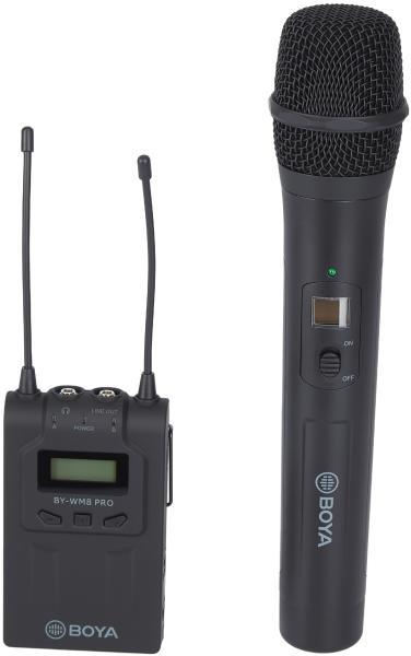 BOYA WM8-PRO K3 UHF Dual-Channel Wireless Vezeték nélküli + WHM8 PRO-Mikrofon Kit (BY-WM8 Pro-k3) - 1db adó kézi mikrofon + 1db vevőA BOYA BY-WM8 Pro K3 egy kézi mikrofon adóból (BY-WHM8 PRO)és egy vevőből áll. Ideális interjúk rögzítéséhez, filmes párbeszédekhez, helyszíni felvételekhez, TV adásokhoz, hírgyűjtéshez, vloggoláshoz, YouTube videók és egyéb professzion