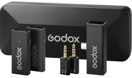 Godox MoveLink Mini UC-Kit2 2.4Ghz Mikrofon Rendszer -Vezetéknélküli Mic |2+1 A fekete Godox vezeték nélküli mikrofonrendszer egy kiváló választás a vloggerek, interjúk készítői és videóprodukciókhoz. A rendszer két személy számára kínál vezeték nélküli megoldást, legyen szó okostelefonról vagy fényképezőgépről. A készlet tartalmaz USB-C, 3,5 mm-es TRS és 3,5 mm