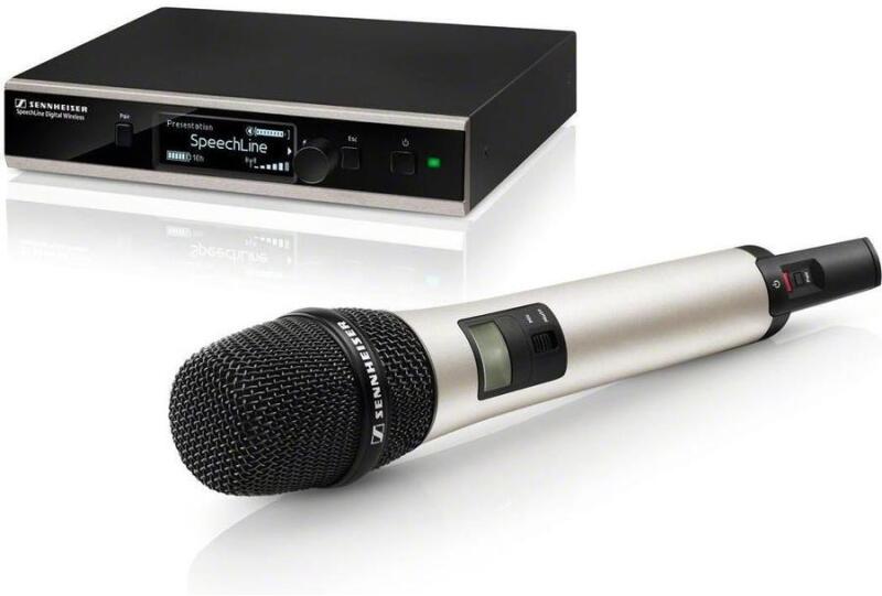 Sennheiser Speechline Handheld digitális vezetéknélküli mikrofon szett A Sennheiser Handheld Set egy kiváló minőségű vezeték nélküli mikrofonrendszer, amelyet általában élő zenészek, énekesek, konferenciaelőadók és más előadók számára terveztek. Ez a rendszer egy kézben tartott mikrofont tartalmaz, amely lehetővé teszi a felhasználók számára, hogy szabadon mozoghas