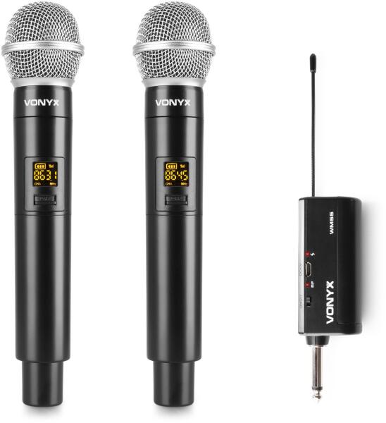 Vonyx WM552 Vezeték nélküli mikrofon plug-and-play, UHF Hivatalos magyarországi forgalmazótól. Leírás: A WM552 egy vezeték nélküli mikrofonrendszer, amely 2 vezeték nélküli kézi mikrofonból és egy vevőegységből áll, amely közvetlenül csatlakoztatható erősítőkhöz, sztereókhoz, audioprocesszorokhoz, DJ-keverőkhöz stb. A torzítás és a nem kívánt zaj minimalizálás