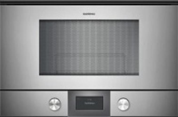 Gaggenau BMP 224 110 beépíthető mikró, jobbos, inox 60 cm széles, 38 magas Tulajdonságok: Süllyesztett telepítés Kilincs nélküli ajtó / automatikus ajtónyitás / ajtónyitás hangos asszisztensen keresztül lehetséges Egyszeri működés és a mikrohullámú sütő és a grill kombinációja Akár 5 üzemmód szekvenciális működése, beleértve kombinált működés és pihenőid