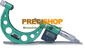 Kengyeles mikrométer, digitális. Méréstartomány:0-100mm/0-4 Felbontás: 0.001mm/0.00005 kengyeles mikrométer, külső mérésekre, IP54-csepp és porálló védelemmel, abszolút elektronikával, adatkimenet RS232, mm/Inch átváltás, keményfém felületű mérőpofa, beállító etalonnal 25mm felett, adapterekkel beállítható méréstartomány, elem: SR44 or LR44, automata kikapcs. Opc