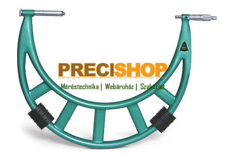 Kengyeles mikrométer, analóg. Méréstartomány: 900-1000mm Felbontás: 0.01mm, kengyeles mikrométer analóg, külső mérésekre, keményfém felületű mérőpofa, beállító etalonnal, adapterekkel beállítható méréstartomány