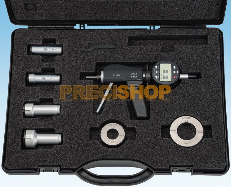 Mahr 4487763 Önbeálló mérőpisztoly készletben Micromar 844 AS | Átmenő furatok| Zsákfuratok| Központos fogazások| | IP védelmi fokozat: IP 42| Adatinterfész: Digimatic, Opto RS-232C, USB| Gyári szabvány| Méréstartomány 50 - 100 mm| Pisztolymarkolattal, tűréshatár beállítással, Tulajdonságok: Csatlakozómenet a mérőfejek cseréjéhez, Önközpontosító mérőfej három o