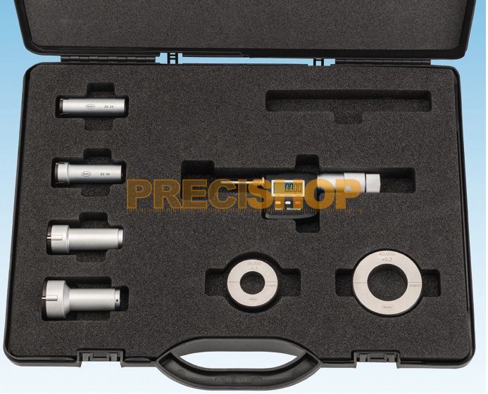 Mahr 4191161 Önbeálló digitális furatmikrométer készletben Micromar 44 EWR| Átmenő furatok| Zsákfuratok| Központos fogazások| | IP védelmi fokozat: IP 52| Adatinterfész: Digimatic, Opto RS-232C, USB| DIN 863-4| Méréstartomány 12 - 20 mm| Funkciók: RESET (kijelző nullázása), ABS (nullázáskor a kijelző nem veszíti el a PRESET értéket), mm/inch, PRESET (előre beállított m