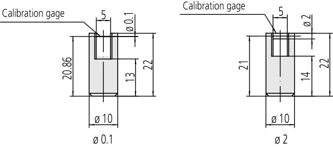 Mitutoyo lézermikrométerek kalibrálásához, ellenőrzéséhez használható. A készlet 2 etalont tartalmaz. Tartóból és beépített mérőcsapból áll melyek átmérője: 0,1 mm és 2 mm.