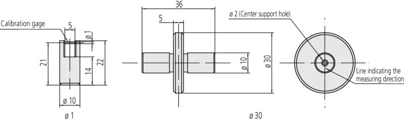 Mitutoyo lézermikrométerek kalibrálásához, ellenőrzéséhez használható. A készlet 2 etalont tartalmaz. 1 tartóból és etalon melyek átmérője: 1 mm (beépített csap) és 30 mm (tárcsa).