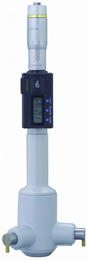3-ponton mérő belső mikrométer jellemzői:Egyedi mikrométer.Titán-bevonatolt mérőcsap a tartósság és ütésállóság érdekében.IP65 védelem, amely lehetővé teszi a közvetlen gyártásban való felhasználását.Nagyméretű LCD kijel