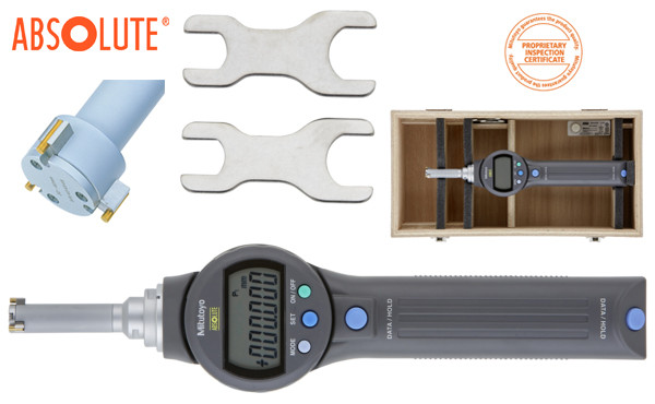 3-ponton mérő Digimatic furatmérő eszköz. Mindegyik készlet rendelkezik egy alaptesttel és cserélhető mérőfejekkel. Az Absolute Borematic az alábbi előnyöket kínálja:Gyors és egyszerű mérés.Titán-bevonatolt mérőcsap kiválóan kopás- é