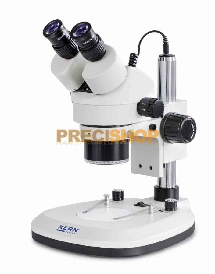 Termék részletekSztereó zoom mikroszkóp binokulár tubussal, alsó és felső LED megvilágítással. Állványba épített markolat a könnyű hordozhatóság érdekbe. Ideális ellenőrzési, minőségbiztosítási célokra, laborokba. Maximális nagyítás: 45x. Okulár: 10x / Ø20mm Zoom objektív: 0,75x - 4,5x. Látómező: Ø 28,6 - 4,4mm Munkatávolság: 105mm Megvilágítás: felső 3W LED, alsó: 3W LE