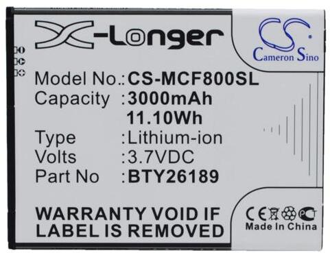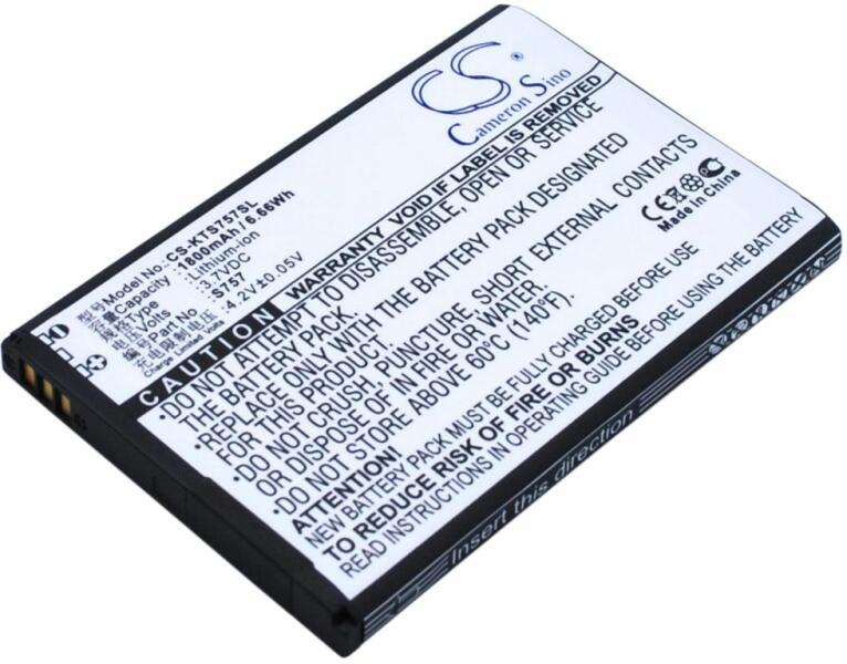 Akkumulátor Cameron Sino CS-KTS757SL Kompatibilitás: K-Touch S757EAN: 4894128110354 Feszültség: 3.70 V Típus: Li-Ion Kapacitás: 1800 mAh Energia: 6.66 Wh Magasság: 68 mm Szélesség: 46 mm Mélység: 6 mm Súly csomagolás nélkül: 36 g Súly csomagolással együtt: 61 g