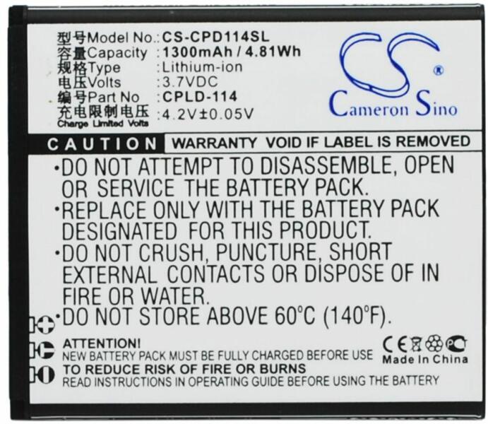 Akkumulátor Cameron Sino CS-CPD114SL Kompatibilitás: Coolpad 8079EAN: 4894128097433 Feszültség: 3.70 V Típus: Li-Ion Kapacitás: 1300 mAh Energia: 4.81 Wh Magasság: 57 mm Szélesség: 50 mm Mélység: 5 mm Súly csomagolás nélkül: 27 g Súly csomagolással együtt: 52 g