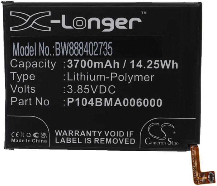 Akkumulátor Cameron Sino CS-HUM835XL Kompatibilitás: Metropcs M835 Huawei M835EAN: 4894128050049 Feszültség: 3.70 V Típus: Li-Ion Kapacitás: 2100 mAh Energia: 7.77 Wh Magasság: 53 mm Szélesség: 43 mm Mélység: 10 mm Súly csomagolás nélkül: 62 g Súly csomagolással együtt: 87 g