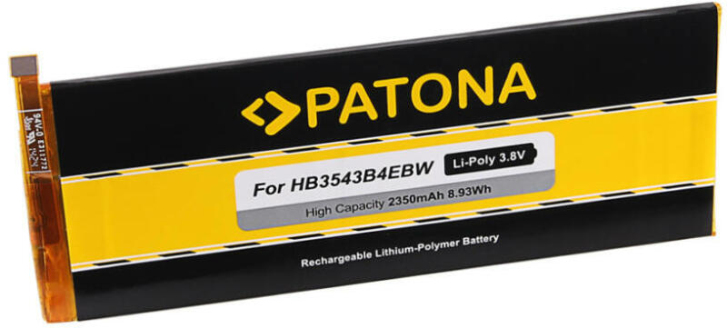 PATONA Akkumulátor f. Huawei Ascend P7, L09, L00, L10, L05, L11, HB3543B4EBW Műszaki adatok: Feszültség: 3,8Volt Kapacitás: 2350mAh Típus: Li-Polymer Kompatibilis modellszám: Huawei Ascend P7, L09, L00, L10, L05, L11 Kompatibilis cikkszámok: Huawei HB3543B4EBW