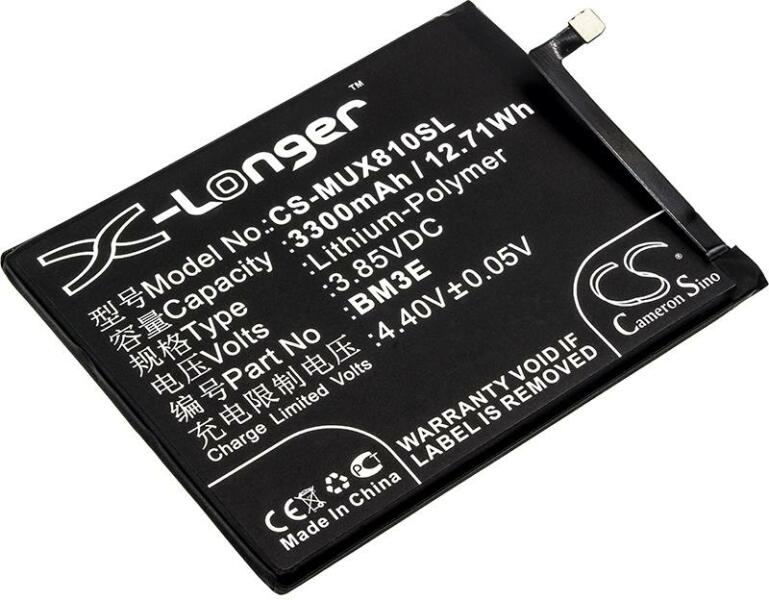 Akkumulátor Cameron Sino CS-MUX810SL Kompatibilitás: Xiaomi Dipper Xiaomi M1803e1a Xiaomi M1803e1c Xiaomi M1803e1t Xiaomi M1808d Xiaomi Mi 8 Xiaomi Mi 8 Dual Sim Td-Lte Xiaomi Mi 8 Premium Edition Xiaomi Mi 8 Premium Edition Dual SimEAN: 4894128138099 Feszültség: 3.85 V Típus: Li-Polymer Kapacitás: 3300 mAh Energia: 12.71 Wh Magasság: 78 mm Szélesség: 63 mm Mélység: 4 mm Súly csomagol