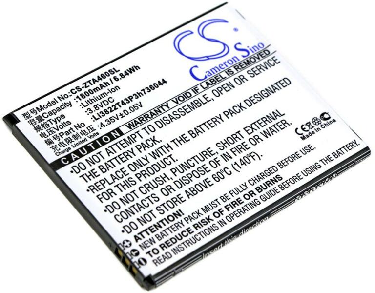 Akkumulátor Cameron Sino CS-ZTA460SL Kompatibilitás: Zte Blade A460 Zte Blade L4EAN: 4894128126331 Feszültség: 3.80 V Típus: Li-Ion Kapacitás: 1800 mAh Energia: 6.84 Wh Magasság: 74 mm Szélesség: 60 mm Mélység: 4 mm Súly csomagolás nélkül: 37 g Súly csomagolással együtt: 62 g