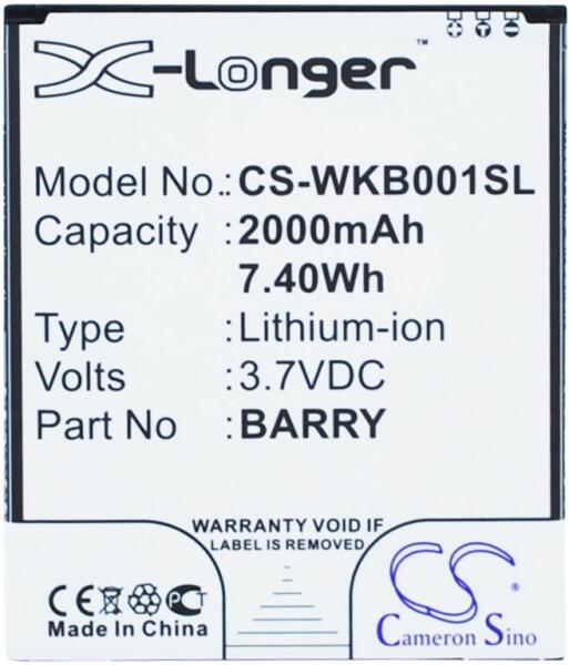 Akkumulátor Cameron Sino CS-WKB001SL Kompatibilitás: Wiko Barry Wiko Barry Dual SimEAN: 4894128106890 Feszültség: 3.70 V Típus: Li-Ion Kapacitás: 2000 mAh Energia: 7.40 Wh Magasság: 70 mm Szélesség: 60 mm Mélység: 4 mm Súly csomagolás nélkül: 40 g Súly csomagolással együtt: 65 g