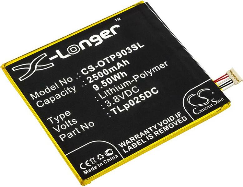 Akkumulátor Cameron Sino CS-OTP903SL Kompatibilitás: Alcatel One Touch Pixi 4 6.0 Alcatel One Touch Pixi 4 6.0 3g Alcatel Ot-8050d Alcatel Ot-9001a Alcatel Ot-9001x Alcatel Pixi 4 6.0EAN: 4894128138280 Feszültség: 3.80 V Típus: Li-Polymer Kapacitás: 2500 mAh Energia: 9.50 Wh Magasság: 75 mm Szélesség: 70 mm Mélység: 3 mm Súly csomagolás nélkül: 38 g Súly csomagolással együtt: 73