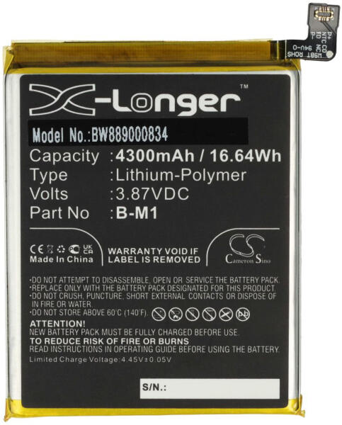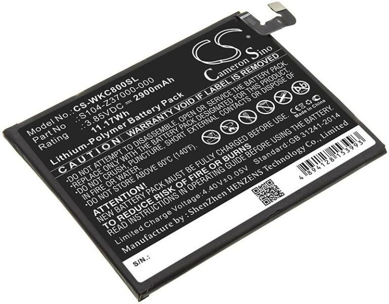 Akkumulátor Cameron Sino CS-WKC800SL Kompatibilitás: Wiko C800ae Wiko View 2 Wiko View 2 Pro Wiko W-C800 Wiko W-C860EAN: 4894128153993 Feszültség: 3.85 V Típus: Li-Polymer Kapacitás: 2900 mAh Energia: 11.17 Wh Magasság: 78 mm Szélesség: 63 mm Mélység: 4 mm Súly csomagolás nélkül: 44 g Súly csomagolással együtt: 94 g