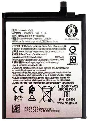 Feszültség: 3.85V - Teljesítmény: 3300mAh - Típus: Li-Po - kompatibilis modellek: Nokia 8.1 TA-1119 TA-1128 - kompatibilis típusok: Nokia HE363