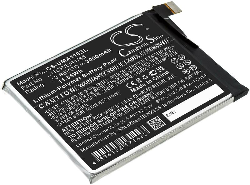 Akkumulátor Cameron Sino CS-UMA110SL Kompatibilitás: Umi Umidigi A1 ProEAN: 4894128171423 Feszültség: 3.85 V Típus: Li-Polymer Kapacitás: 3000 mAh Energia: 11.55 Wh Magasság: 71 mm Szélesség: 56 mm Mélység: 4 mm Súly csomagolás nélkül: 41 g Súly csomagolással együtt: 66 g