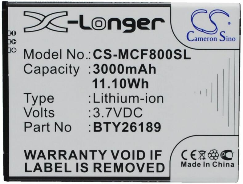 Akkumulátor Cameron Sino CS-MCF800SL Kompatibilitás: Mobistel Cynus F8EAN: 4894128096887 Feszültség: 3.70 V Típus: Li-Ion Kapacitás: 3000 mAh Energia: 11.10 Wh Magasság: 84 mm Szélesség: 65 mm Mélység: 5 mm Súly csomagolás nélkül: 57 g Súly csomagolással együtt: 92 g