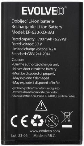 Gyári akkumulátor 1700 mAh Li-Ion, Eredeti gyári, Evolveo, 1700 mAh, 6 hónap