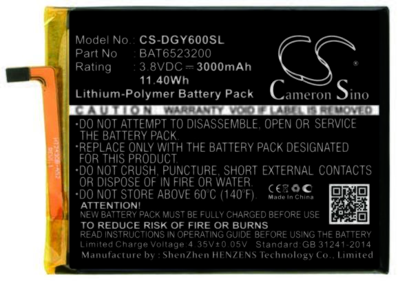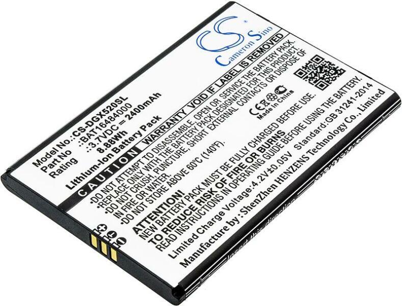 Akkumulátor Cameron Sino CS-DGX520SL Kompatibilitás: Doogee X5 Max ProEAN: 4894128131298 Feszültség: 3.70 V Típus: Li-Ion Kapacitás: 2400 mAh Energia: 8.88 Wh Magasság: 80 mm Szélesség: 55 mm Mélység: 6 mm Súly csomagolás nélkül: 53 g Súly csomagolással együtt: 88 g