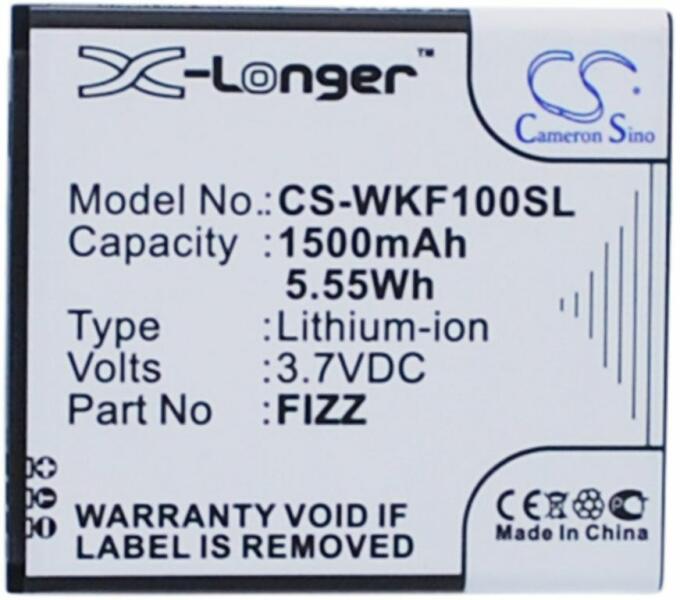 Akkumulátor Cameron Sino CS-WKF100SL Kompatibilitás: Wiko FizzEAN: 4894128108047 Feszültség: 3.70 V Típus: Li-Ion Kapacitás: 1500 mAh Energia: 5.55 Wh Magasság: 59 mm Szélesség: 52 mm Mélység: 5 mm Súly csomagolás nélkül: 26 g Súly csomagolással együtt: 51 g