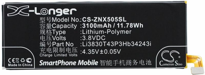 Akkumulátor Cameron Sino CS-ZNX505SL Kompatibilitás: Zte Nubia Z7 Max Zte Nubia Z7 Max Dual Sim Zte Nx505jEAN: 4894128095446 Feszültség: 3.80 V Típus: Li-Polymer Kapacitás: 3100 mAh Energia: 11.78 Wh Magasság: 113 mm Szélesség: 41 mm Mélység: 4 mm Súly csomagolás nélkül: 48 g Súly csomagolással együtt: 83 g