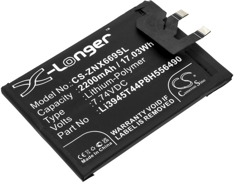 Akkumulátor Cameron Sino CS-ZNX669SL Kompatibilitás: Zte Nubia Red Magic 6 Pro Zte Nx669j-PEAN: 4894128170891 Feszültség: 7.74 V Típus: Li-Polymer Kapacitás: 2200 mAh Energia: 17.03 Wh Magasság: 89 mm Szélesség: 62 mm Mélység: 6 mm Súly csomagolás nélkül: 70 g Súly csomagolással együtt: 120 g