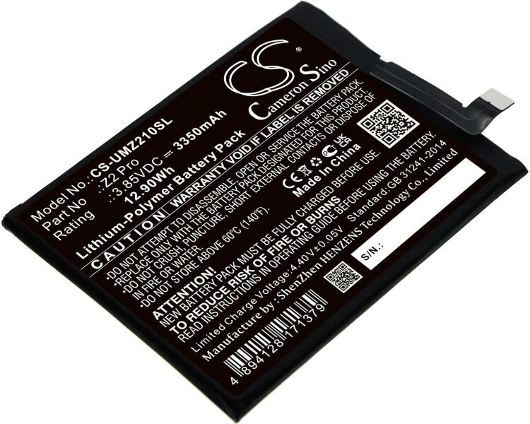 Akkumulátor Cameron Sino CS-UMZ210SL Kompatibilitás: Umi Umidigi Z2 ProEAN: 4894128171379 Feszültség: 3.85 V Típus: Li-Polymer Kapacitás: 3350 mAh Energia: 12.90 Wh Magasság: 78 mm Szélesség: 60 mm Mélység: 5 mm Súly csomagolás nélkül: 49 g Súly csomagolással együtt: 99 g