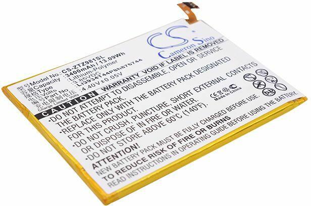 Akkumulátor Cameron Sino CS-ZTZ981SL Kompatibilitás: Zte Imperial Max Zte Max Duo Lte Zte Z962bl Zte Z963u Zte Z963vl Zte Z981 Zte Z988 Metropcs Zmax Pro Cricket Grand X Max 2EAN: 4894128120568 Feszültség: 3.85 V Típus: Li-Polymer Kapacitás: 3400 mAh Energia: 13.09 Wh Magasság: 86 mm Szélesség: 66 mm Mélység: 4 mm Súly csomagolás nélkül: 52 g Súly csomagolással együtt: 87 g