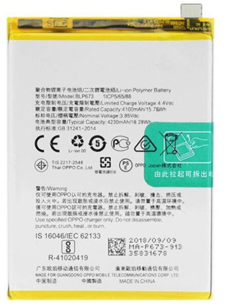 Információk Oppo BLP673 gyári akkumulátor Li-Polymer 4230mAh (A31 2020)