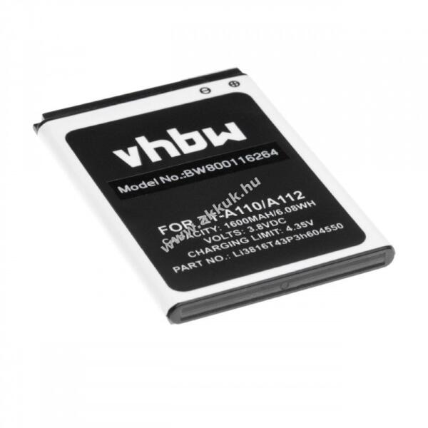 Feszültség: 3.8V - Teljesítmény: 1600mAh - Típus: Li-Po - kompatibilis modellek: ZTE Blade A110 ZTE Blade A112 ZTE Blade A410 - kompatibilis típusok: ZTE Li3715T42P3h604550 ZTE Li3816T43P3h604550