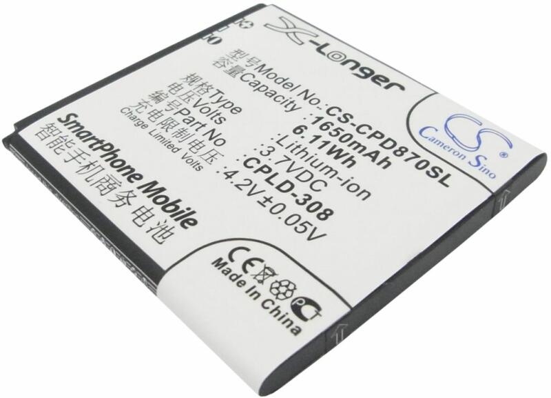 Akkumulátor Cameron Sino CS-CPD870SL Kompatibilitás: Coolpad 8085 Coolpad 8085q Coolpad 8702EAN: 4894128089087 Feszültség: 3.70 V Típus: Li-Ion Kapacitás: 1650 mAh Energia: 6.11 Wh Magasság: 61 mm Szélesség: 56 mm Mélység: 5 mm Súly csomagolás nélkül: 35 g Súly csomagolással együtt: 60 g