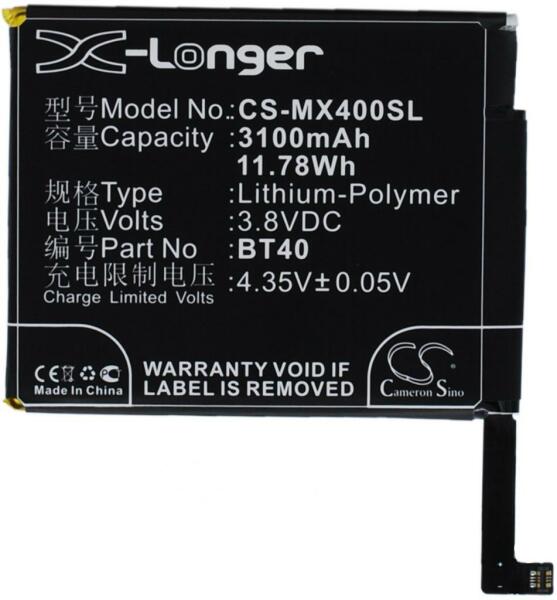 Akkumulátor Cameron Sino CS-MX400SL Kompatibilitás: Meizu M460 Meizu M461 Meizu Mx4EAN: 4894128093619 Feszültség: 3.80 V Típus: Li-Polymer Kapacitás: 3100 mAh Energia: 11.78 Wh Magasság: 70 mm Szélesség: 55 mm Mélység: 5 mm Súly csomagolás nélkül: 45 g Súly csomagolással együtt: 70 g
