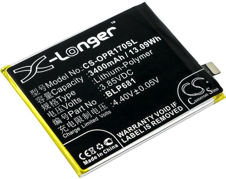 Akkumulátor Cameron Sino CS-OPR170SL Kompatibilitás: Oppo Pagt00 Oppo R17 Oppo R17 Dual Sim Oppo R17 Dual Sim Td-LteEAN: 4894128138792 Feszültség: 3.85 V Típus: Li-Polymer Kapacitás: 3400 mAh Energia: 13.09 Wh Magasság: 79 mm Szélesség: 64 mm Mélység: 4 mm Súly csomagolás nélkül: 48 g Súly csomagolással együtt: 83 g
