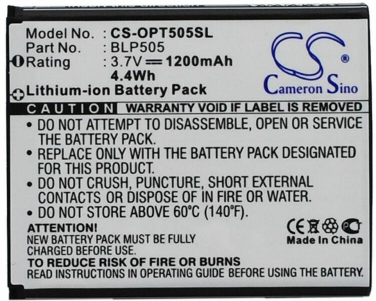 Akkumulátor Cameron Sino CS-OPT505SL Kompatibilitás: Oppo T9EAN: 4894128045014 Feszültség: 3.70 V Típus: Li-Ion Kapacitás: 1200 mAh Energia: 4.40 Wh Magasság: 55 mm Szélesség: 45 mm Mélység: 6 mm Súly csomagolás nélkül: 31 g Súly csomagolással együtt: 56 g