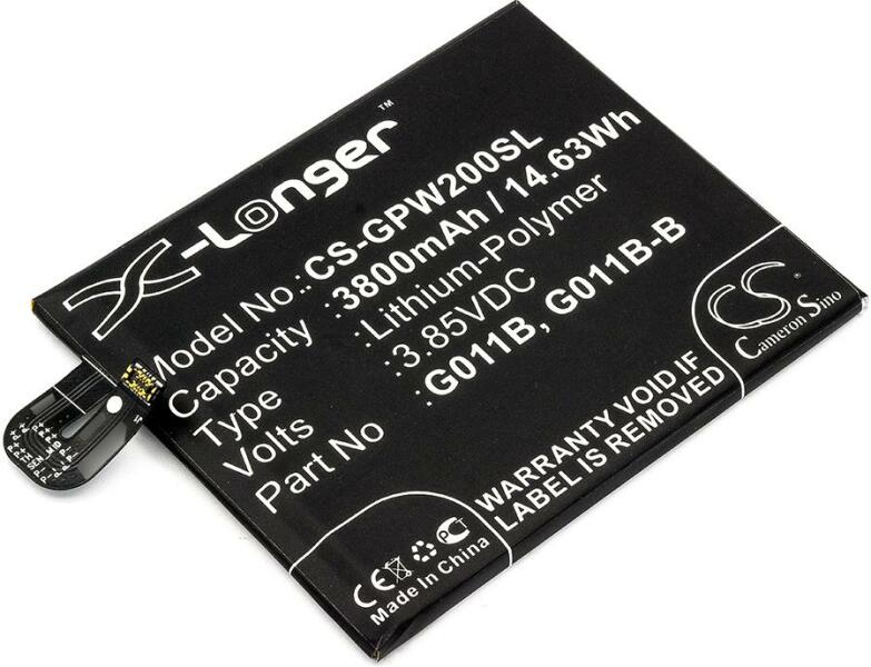 Akkumulátor Cameron Sino CS-GPW200SL Kompatibilitás: Google G011c Google Pixel 2 Xl 2017 Google Pixel Xl2 2017EAN: 4894128130550 Feszültség: 3.85 V Típus: Li-Polymer Kapacitás: 3800 mAh Energia: 14.63 Wh Magasság: 76 mm Szélesség: 63 mm Mélység: 4 mm Súly csomagolás nélkül: 52 g Súly csomagolással együtt: 102 g