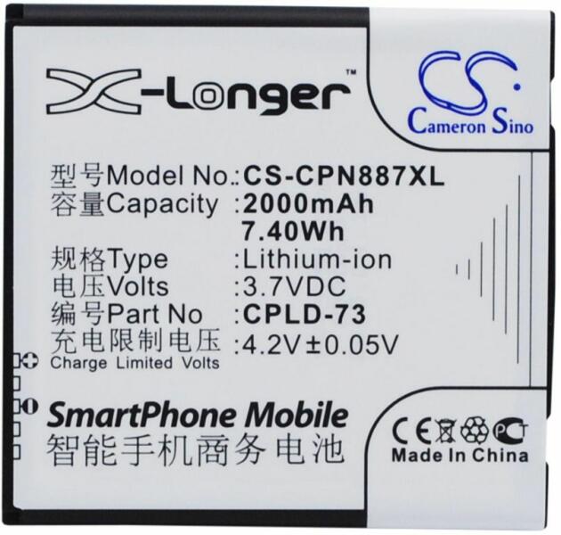 Akkumulátor Cameron Sino CS-CPN887XL Kompatibilitás: Coolpad 8870EAN: 4894128080787 Feszültség: 3.70 V Típus: Li-Ion Kapacitás: 2000 mAh Energia: 7.40 Wh Magasság: 59 mm Szélesség: 56 mm Mélység: 6 mm Súly csomagolás nélkül: 41 g Súly csomagolással együtt: 66 g