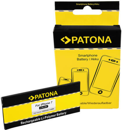 PATONA Akkumulátor f. Apple iPhone 7, 616-00259 Műszaki adatok: Feszültség: 3,8 Volt Kapacitás: 1960mAh Cell Típus: Li-Polymer Kompatibilis modellszám: Apple iPhone 7 Kompatibilis cikkszámok: Apple 616-00259