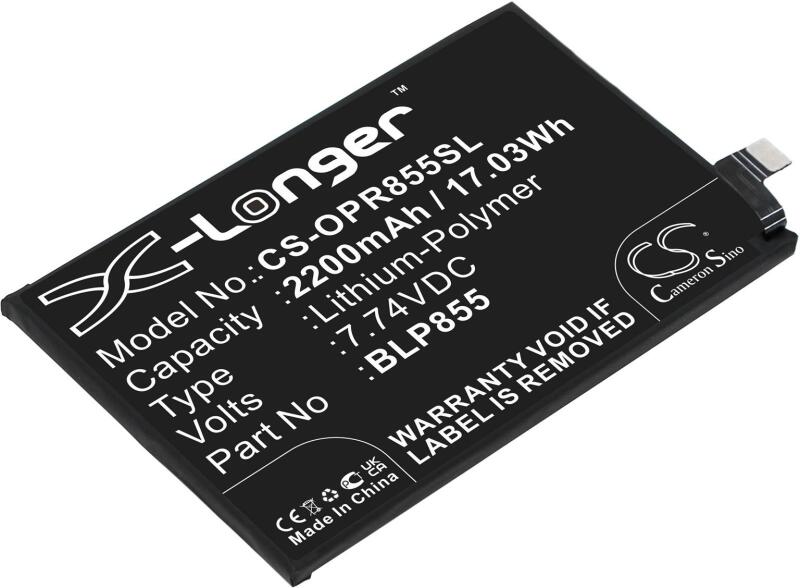 Akkumulátor Cameron Sino CS-OPR855SL Kompatibilitás: Oppo Pepm00 Oppo Reno6 Pro 5gEAN: 4894128178590 Feszültség: 7.74 V Típus: Li-Polymer Kapacitás: 2200 mAh Energia: 17.03 Wh Magasság: 91 mm Szélesség: 62 mm Mélység: 5 mm Súly csomagolás nélkül: 63 g Súly csomagolással együtt: 113 g
