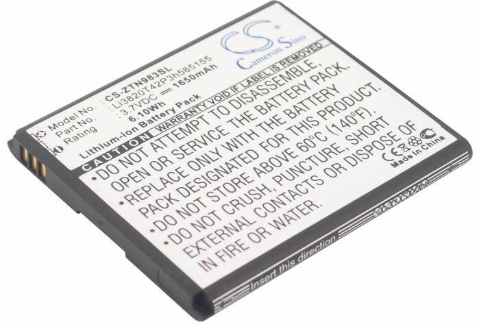 Akkumulátor Cameron Sino CS-ZTN983SL Kompatibilitás: Zte N983 Zte Solar Zte U960e Zte Z795gEAN: 4894128072881 Feszültség: 3.70 V Típus: Li-Ion Kapacitás: 1650 mAh Energia: 6.11 Wh Magasság: 58 mm Szélesség: 51 mm Mélység: 6 mm Súly csomagolás nélkül: 32 g Súly csomagolással együtt: 57 g