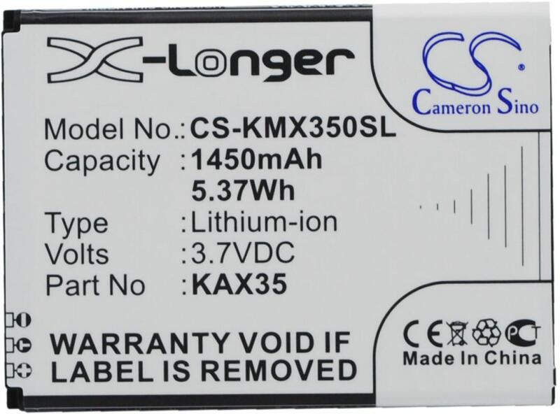 Akkumulátor Cameron Sino CS-KMX350SL Kompatibilitás: Kazam Trooper X3.5EAN: 4894128096863 Feszültség: 3.70 V Típus: Li-Ion Kapacitás: 1450 mAh Energia: 5.37 Wh Magasság: 65 mm Szélesség: 48 mm Mélység: 4 mm Súly csomagolás nélkül: 30 g Súly csomagolással együtt: 55 g