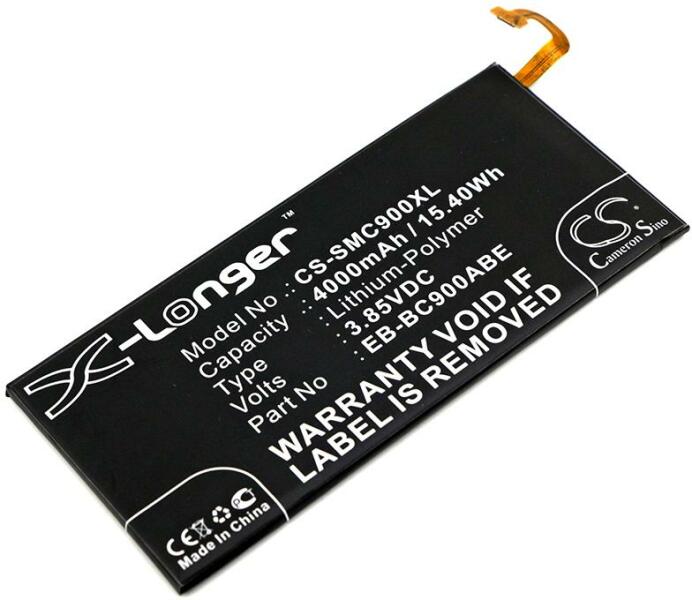 Akkumulátor Cameron Sino CS-SMC900XL Kompatibilitás: Samsung Galaxy C9 Pro Samsung Galaxy C9 Pro Duos Samsung Galaxy C9 Pro Duos Td-Lte Samsung Sm-C9000 Samsung Sm-C9008 Samsung Sm-C900f/ds Samsung Sm-C900y/dsEAN: 4894128124535 Feszültség: 3.85 V Típus: Li-Polymer Kapacitás: 4000 mAh Energia: 15.40 Wh Magasság: 111 mm Szélesség: 51 mm Mélység: 4 mm Súly csomagolás nélkül: 56 g Súly