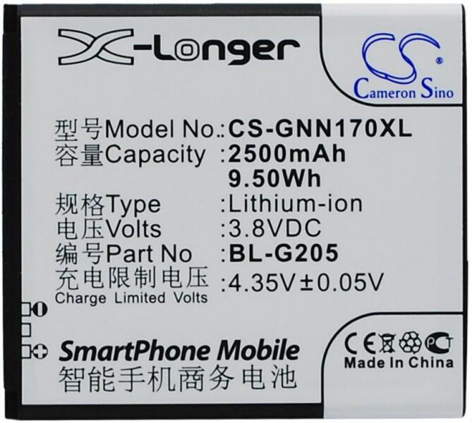 Akkumulátor Cameron Sino CS-GNN170XL Kompatibilitás: Gionee Gn170EAN: 4894128095804 Feszültség: 3.80 V Típus: Li-Ion Kapacitás: 2500 mAh Energia: 9.50 Wh Magasság: 60 mm Szélesség: 54 mm Mélység: 7 mm Súly csomagolás nélkül: 45 g Súly csomagolással együtt: 70 g