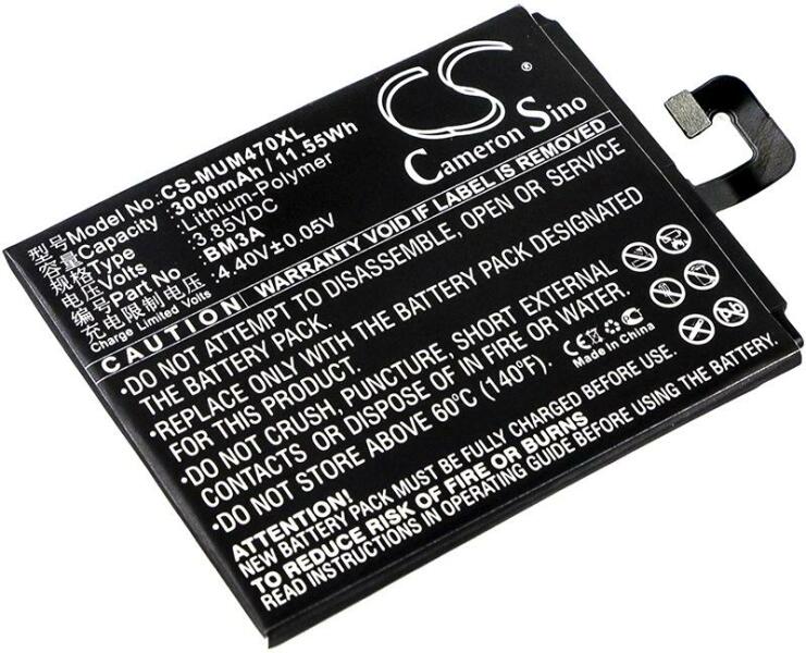 Akkumulátor Cameron Sino CS-MUM470XL Kompatibilitás: Xiaomi Mi Note 3 Xiaomi Note 3EAN: 4894128135234 Feszültség: 3.85 V Típus: Li-Polymer Kapacitás: 3000 mAh Energia: 11.55 Wh Magasság: 79 mm Szélesség: 63 mm Mélység: 3 mm Súly csomagolás nélkül: 40 g Súly csomagolással együtt: 75 g