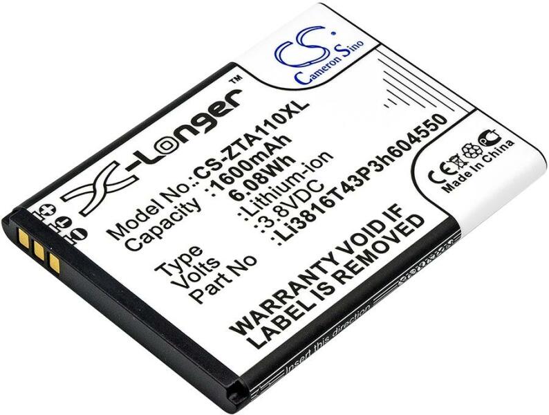 Akkumulátor Cameron Sino CS-ZTA110XL Kompatibilitás: Zte Blade A110 Zte Blade A112 Zte Blade A410EAN: 4894128130413 Feszültség: 3.80 V Típus: Li-Ion Kapacitás: 1200 mAh Energia: 4.56 Wh Magasság: 60 mm Szélesség: 45 mm Mélység: 5 mm Súly csomagolás nélkül: 29 g Súly csomagolással együtt: 54 g